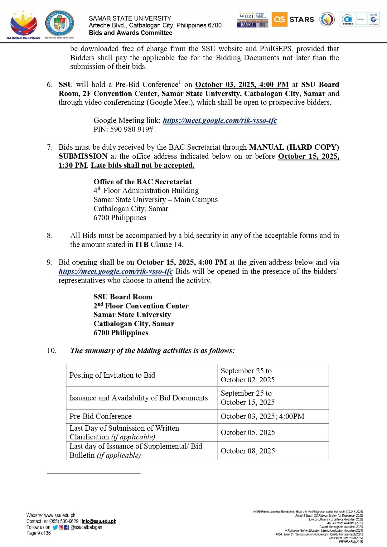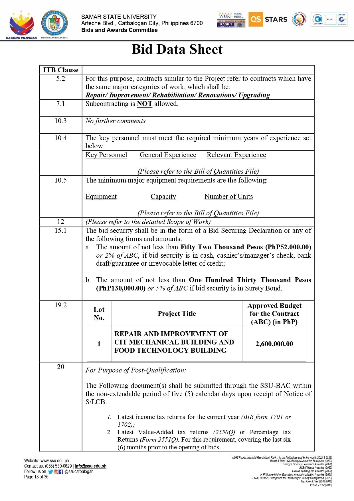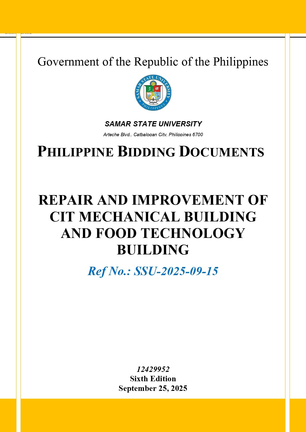Invitation to Bid for the Repair and Improvement of CIT Mechanical Building and Food Technology Building (Ref No.: SSU-2025-09-15)