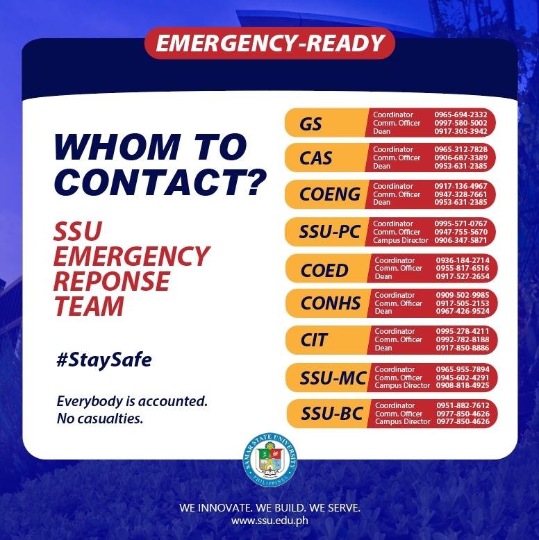 Whom To Contact? These are the contact information of the SSU Emergency Response Team: