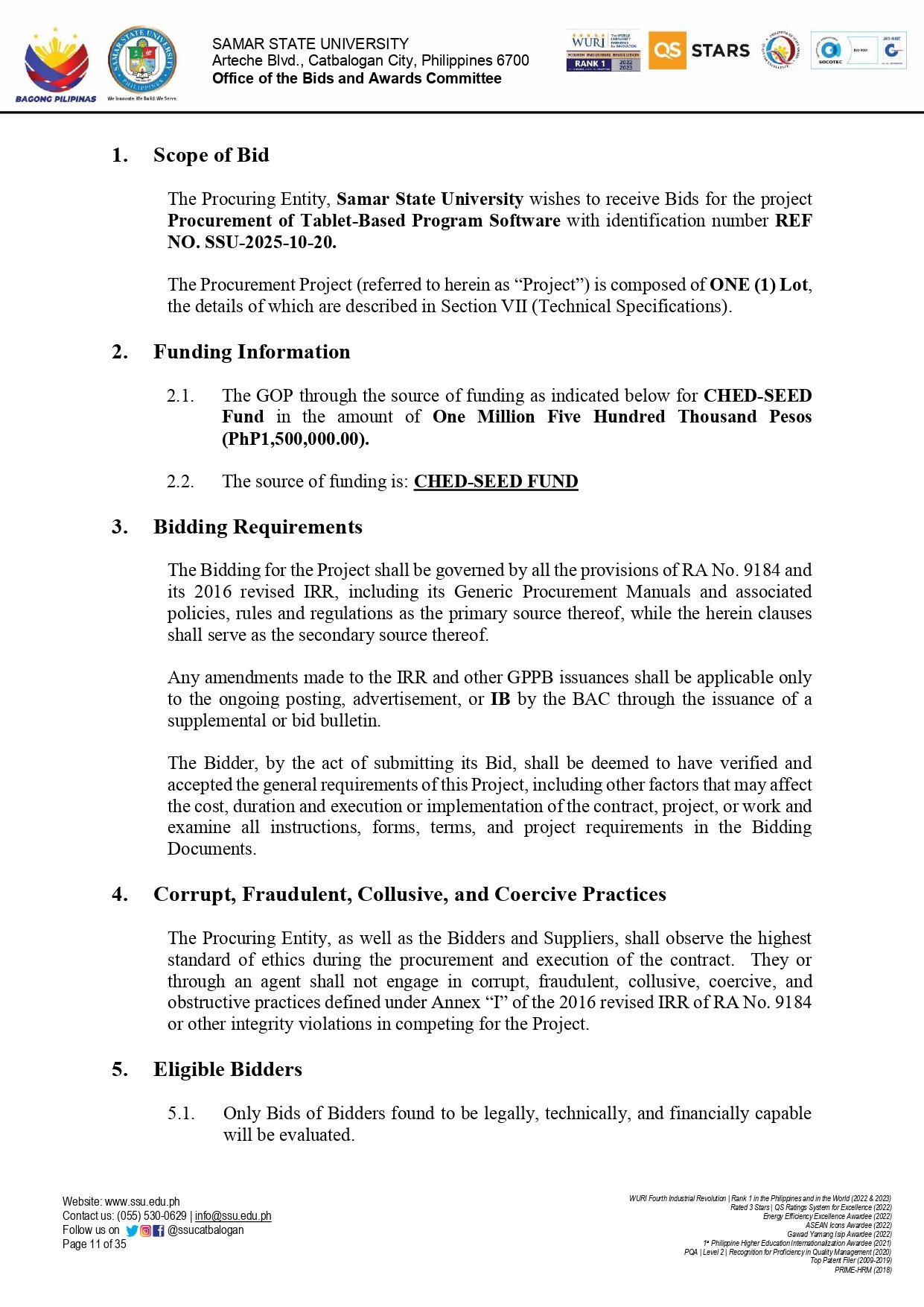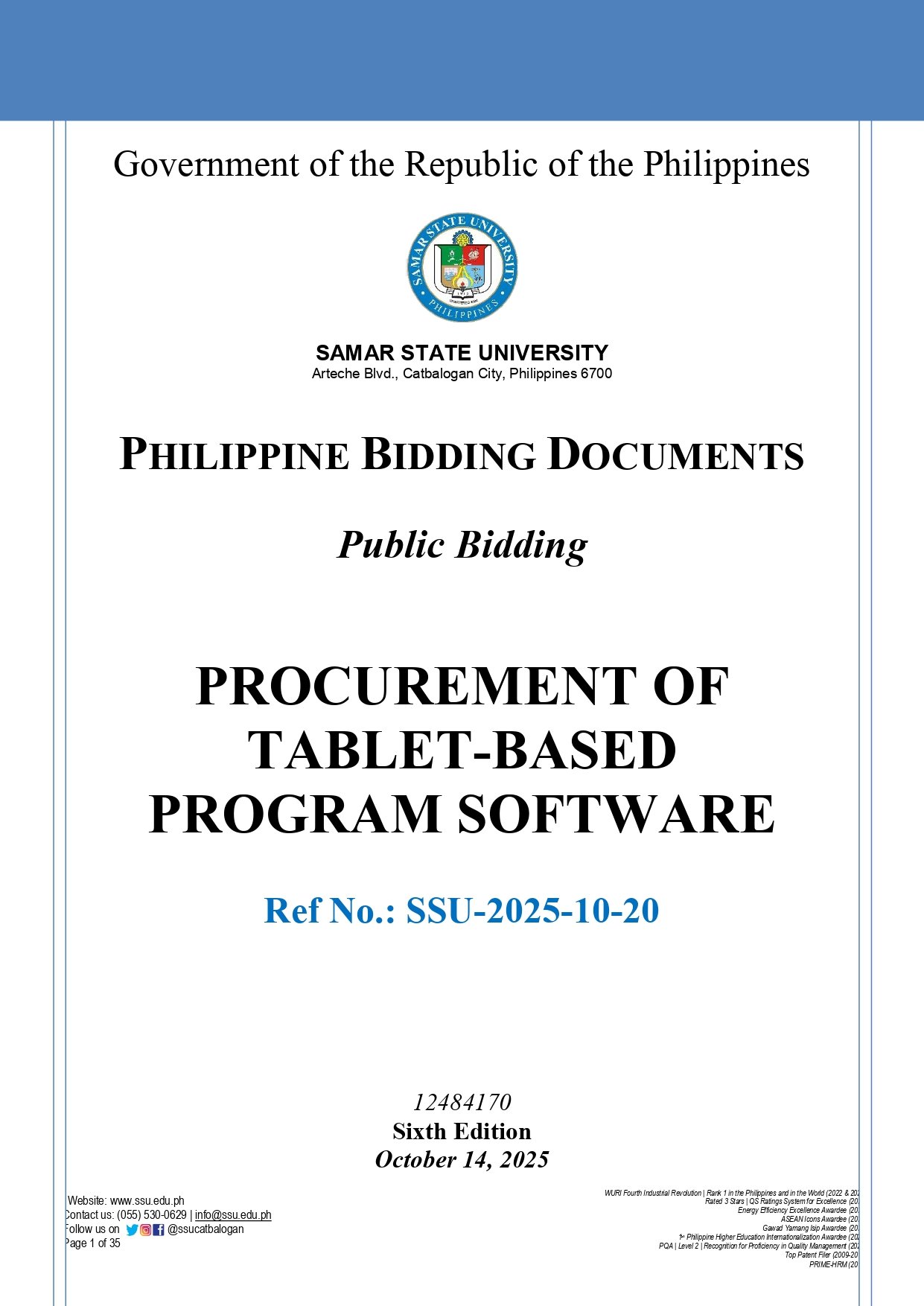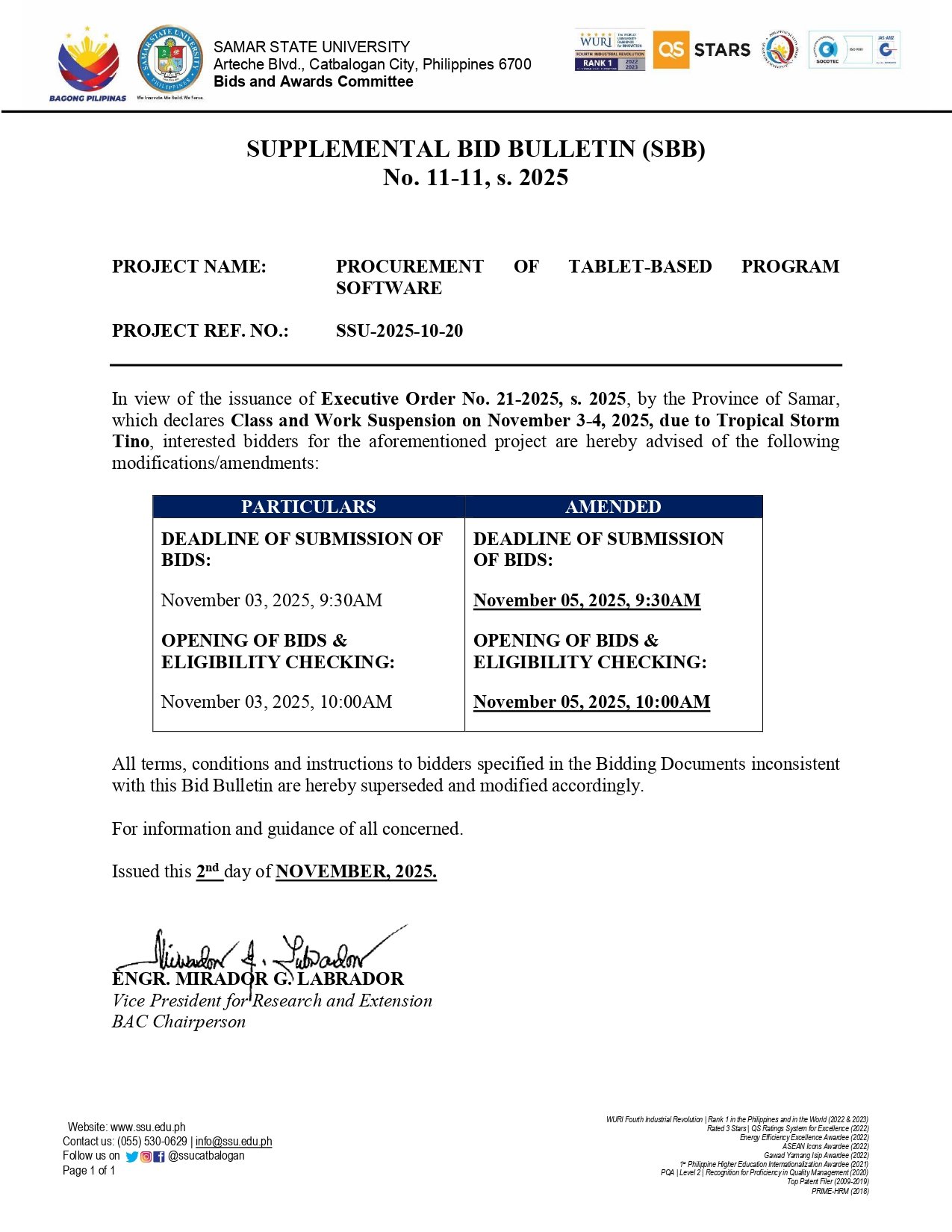 SUPPLEMENTAL BID BULLETIN (SBB) No. 11-11, s.2025: PROCUREMENT OF TABLET-BASED PROGRAM SOFTWARE (Ref. No.: SSU-2025-10-20)By Admin / November 5, 2025