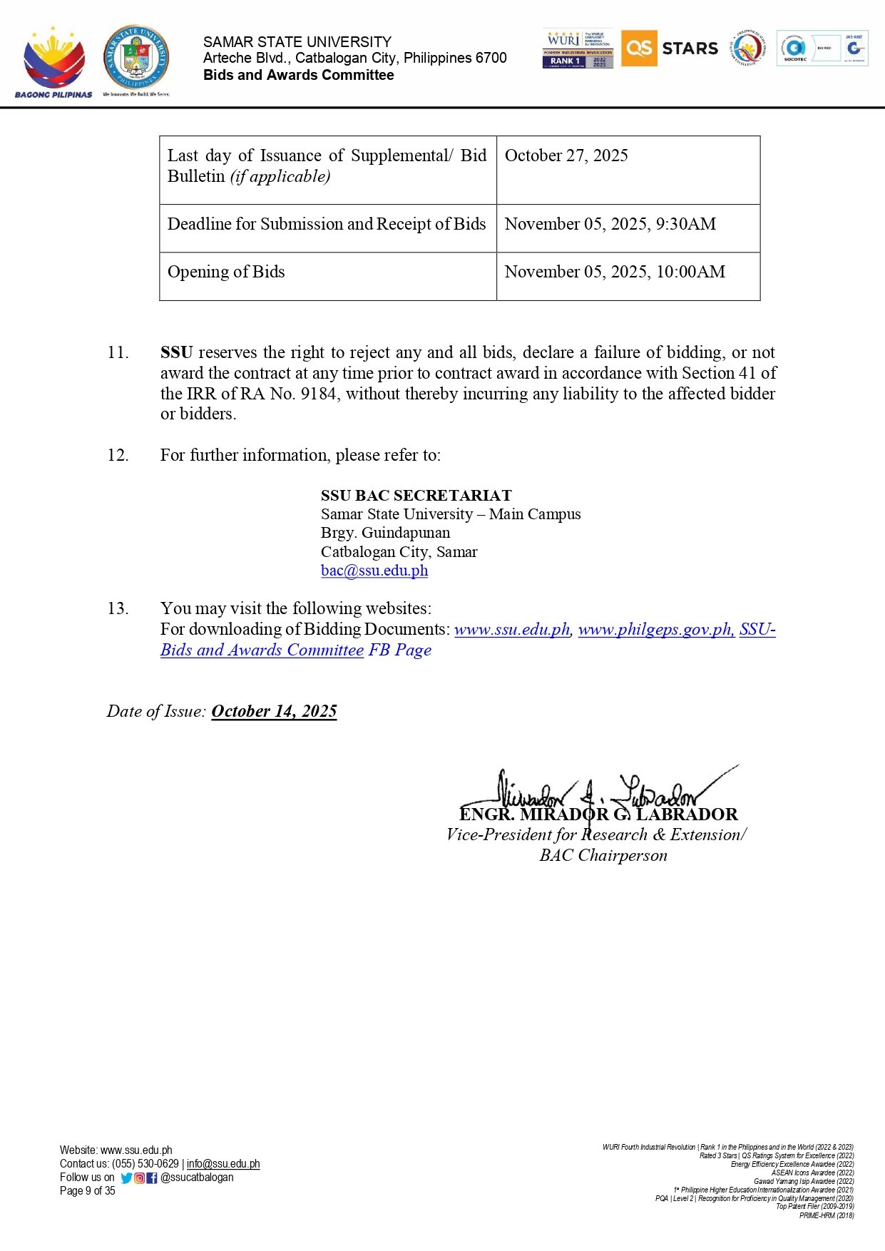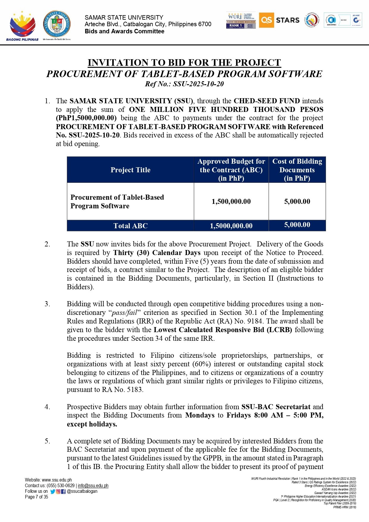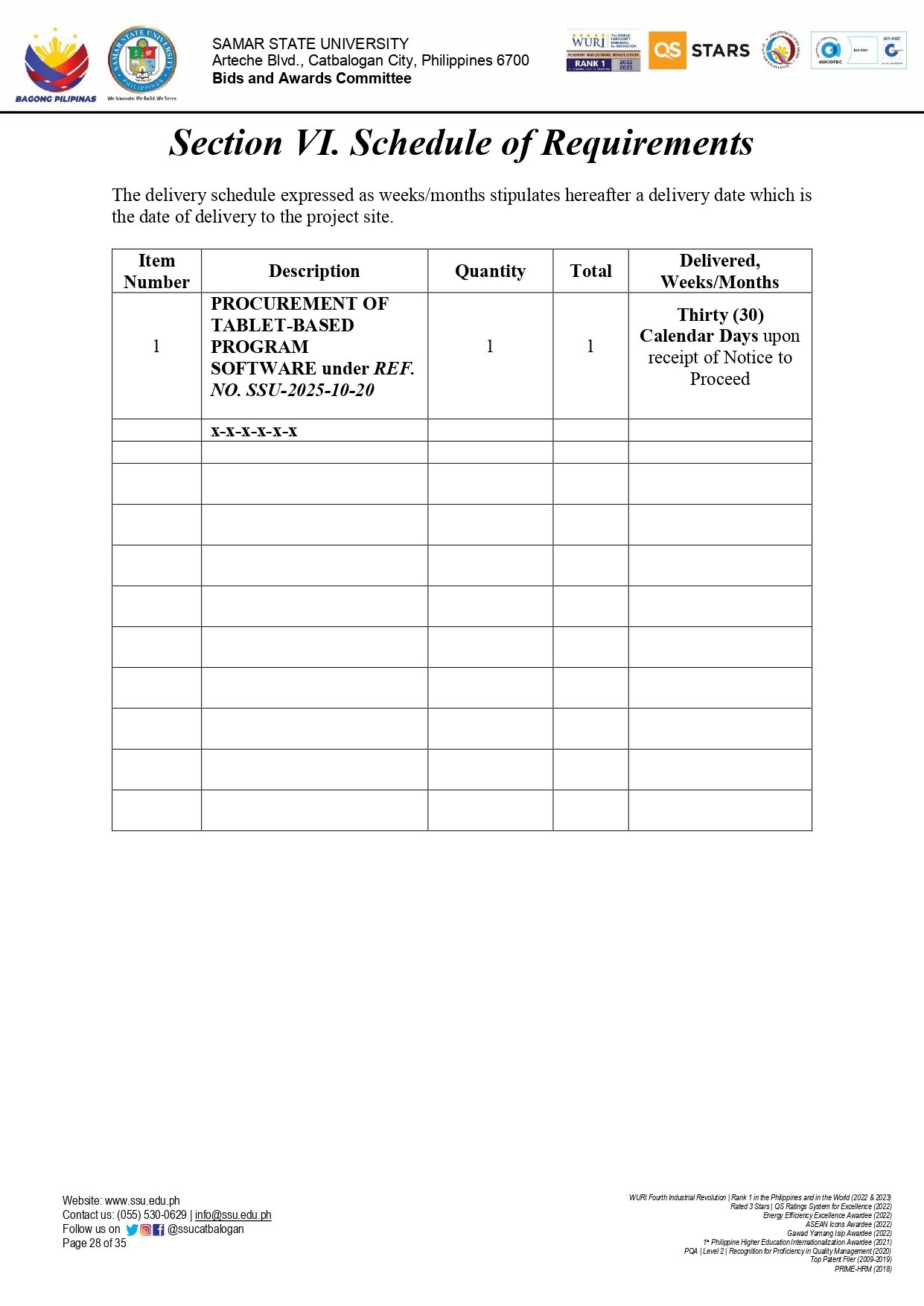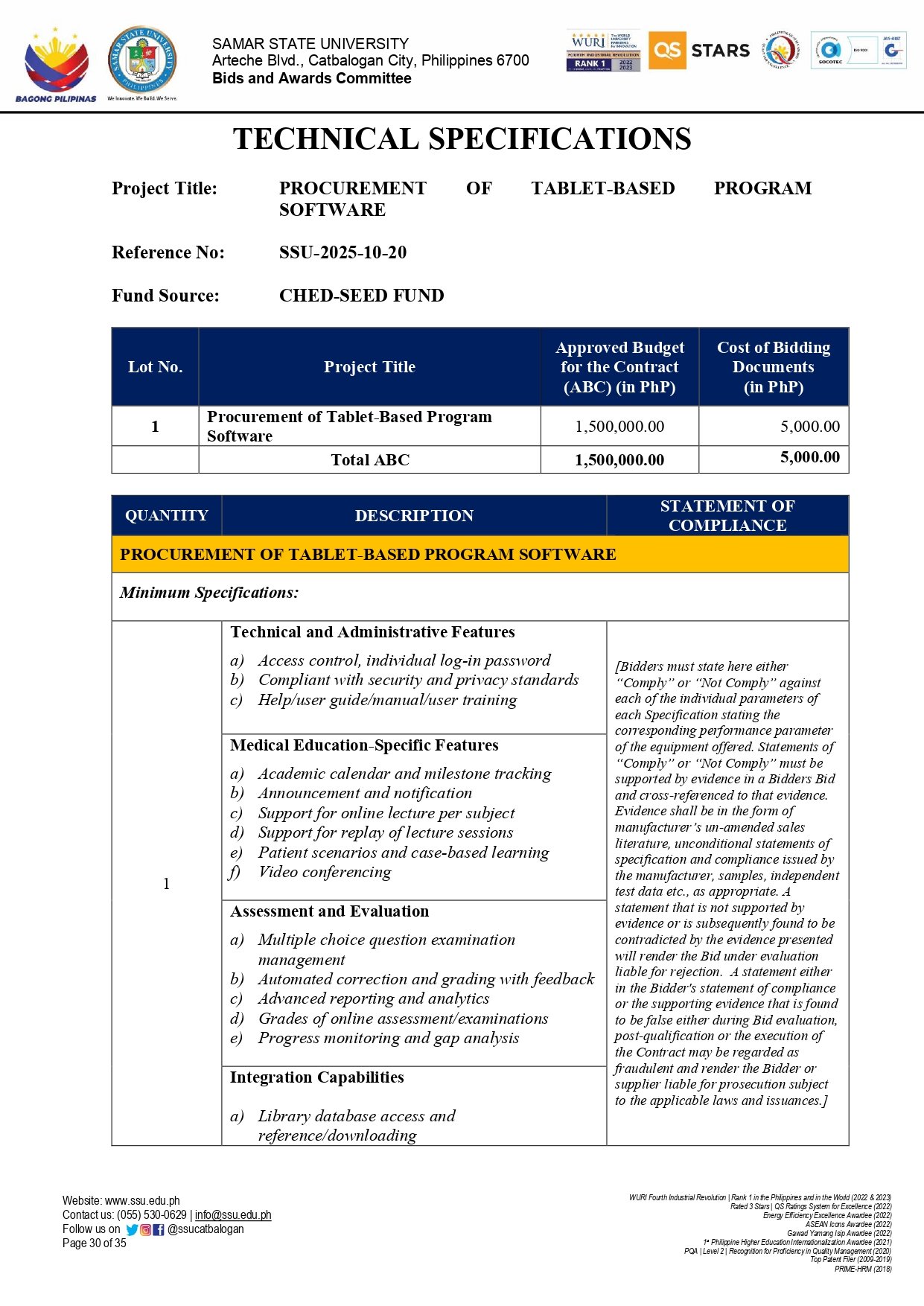 SUPPLEMENTAL BID BULLETIN (SBB) No. 11-11, s.2025: PROCUREMENT OF TABLET-BASED PROGRAM SOFTWARE (Ref. No.: SSU-2025-10-20)By Admin / November 5, 2025