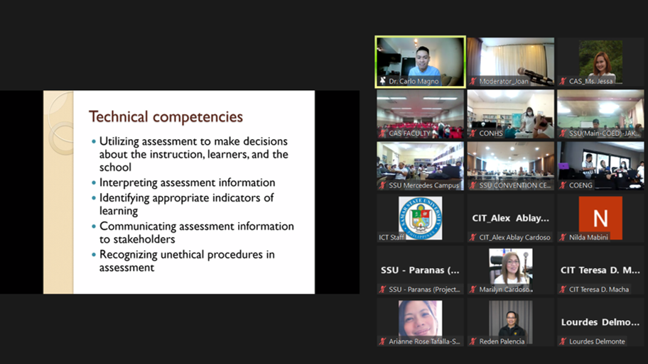 He also discussed thoroughly the seven (7) principles of assessment, features of Outcomes-Based Education (OBE) assessment, and the technical competencies needed to effectively assess the learners.