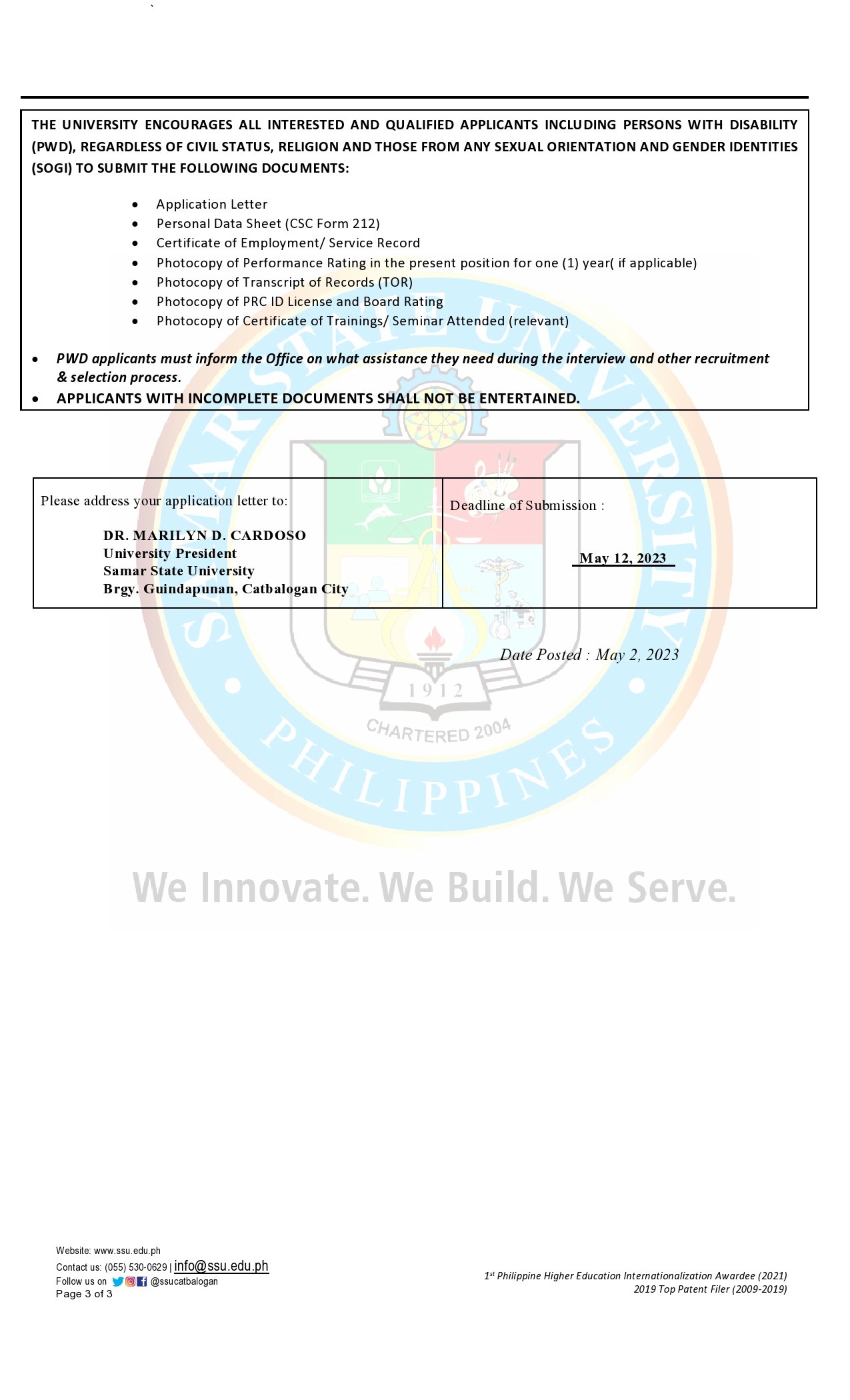 Notice of Vacant Positions (As of May 2, 2023)