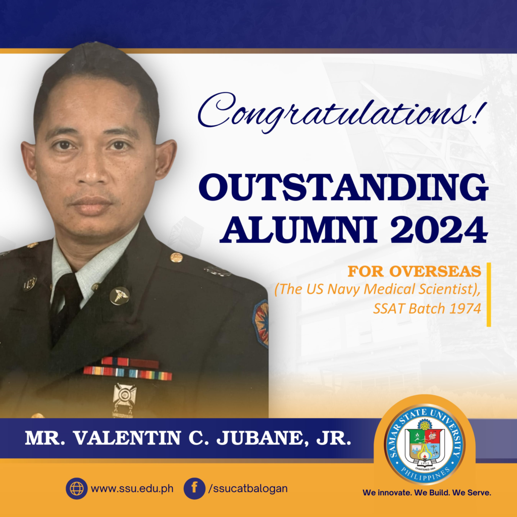 The fourth awardee is Mr. Valentine C. Jubane Jr., the SSU Outstanding Alumnus for Overseas. During the 80’s, Mr. Jubane joined and trained with the US Navy, and received four US licenses as a clinical laboratory scientist and a medical laboratory scientist. In his 20-year career as a medical technology specialist, he retired from the US Navy as a Hospital Corpsman Medical Laboratory and received numerous recognitions for his exceptional performance, moral courage, and dedication. This recognition inspires other alumni every homecoming as SSU honors those who made significant mark in their respective fields that bring honor and pride to the University.