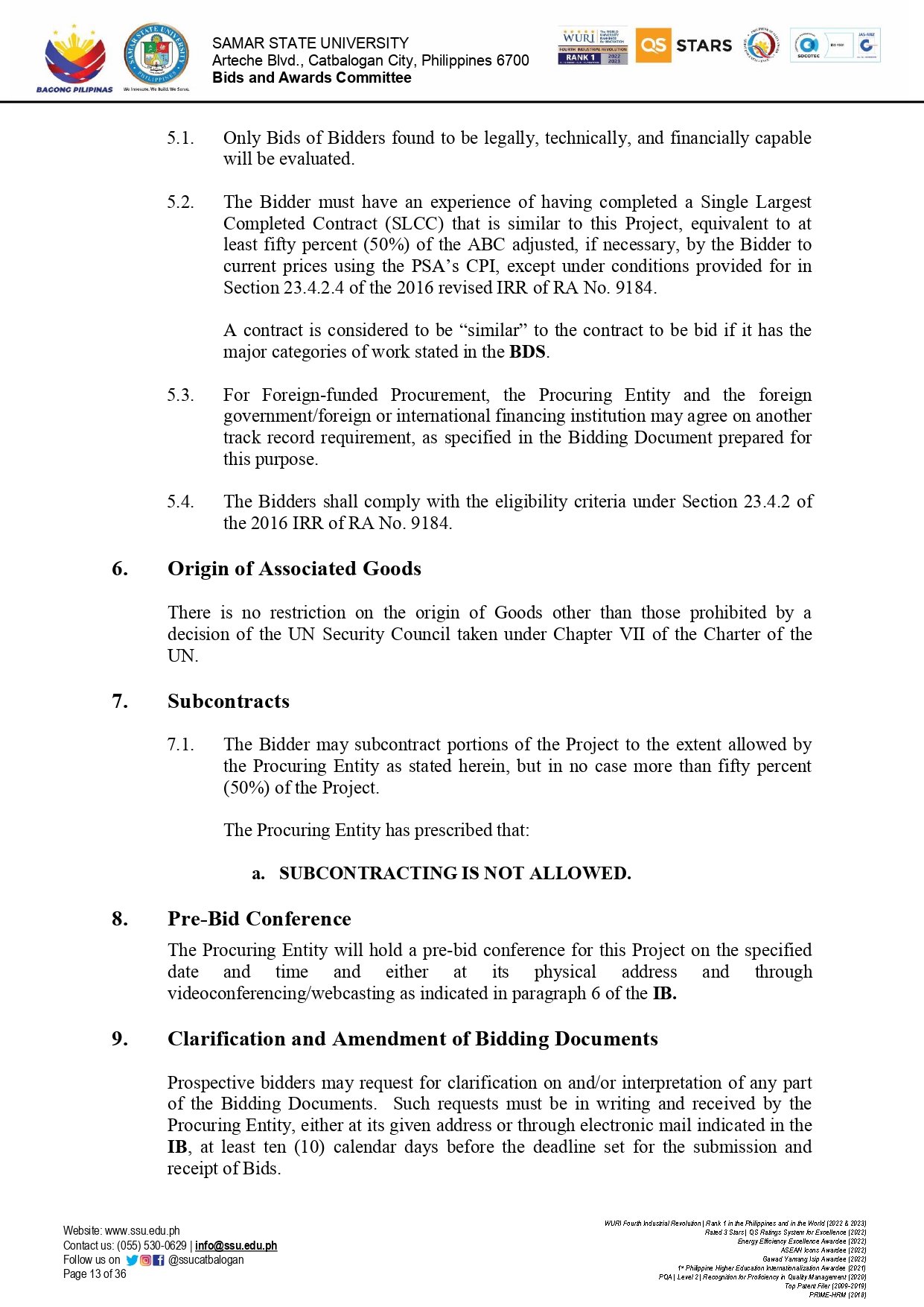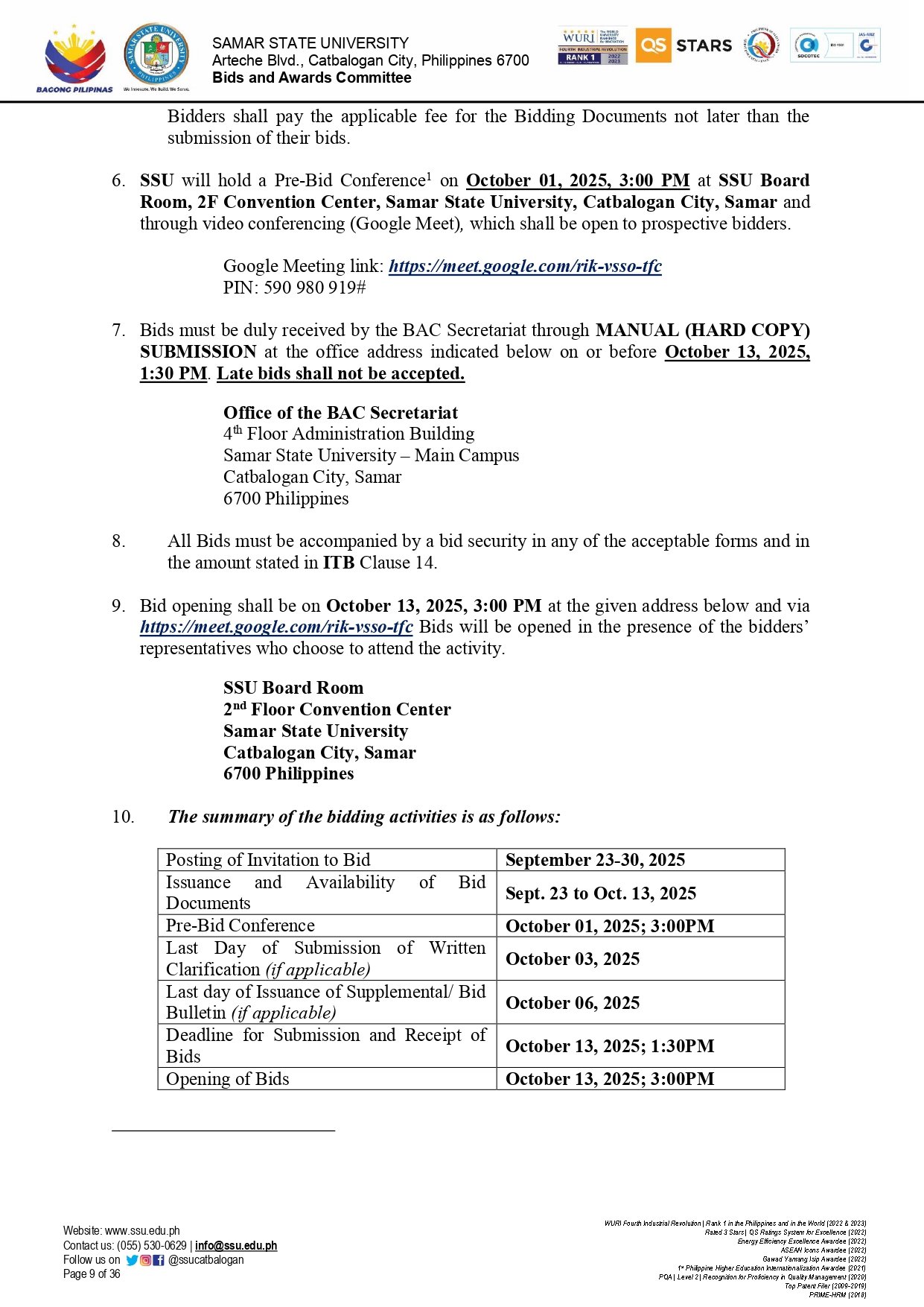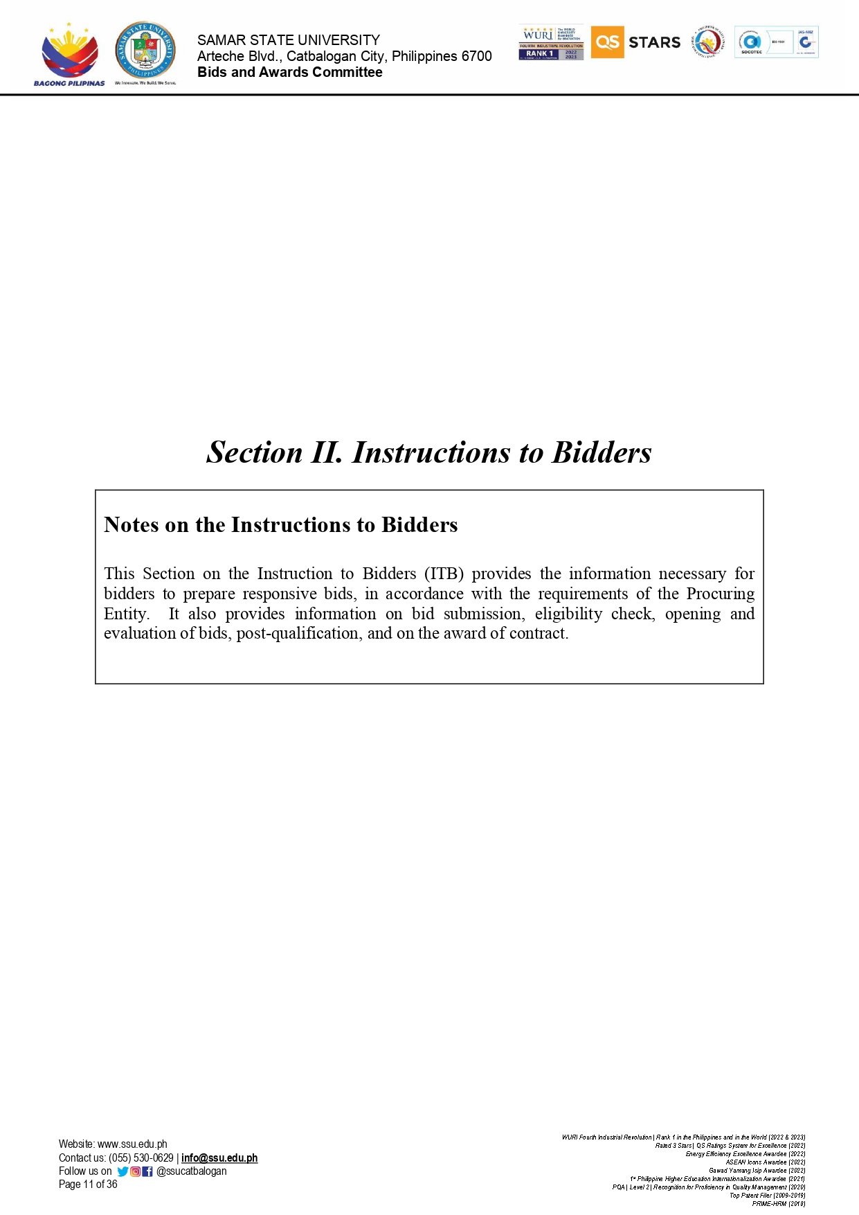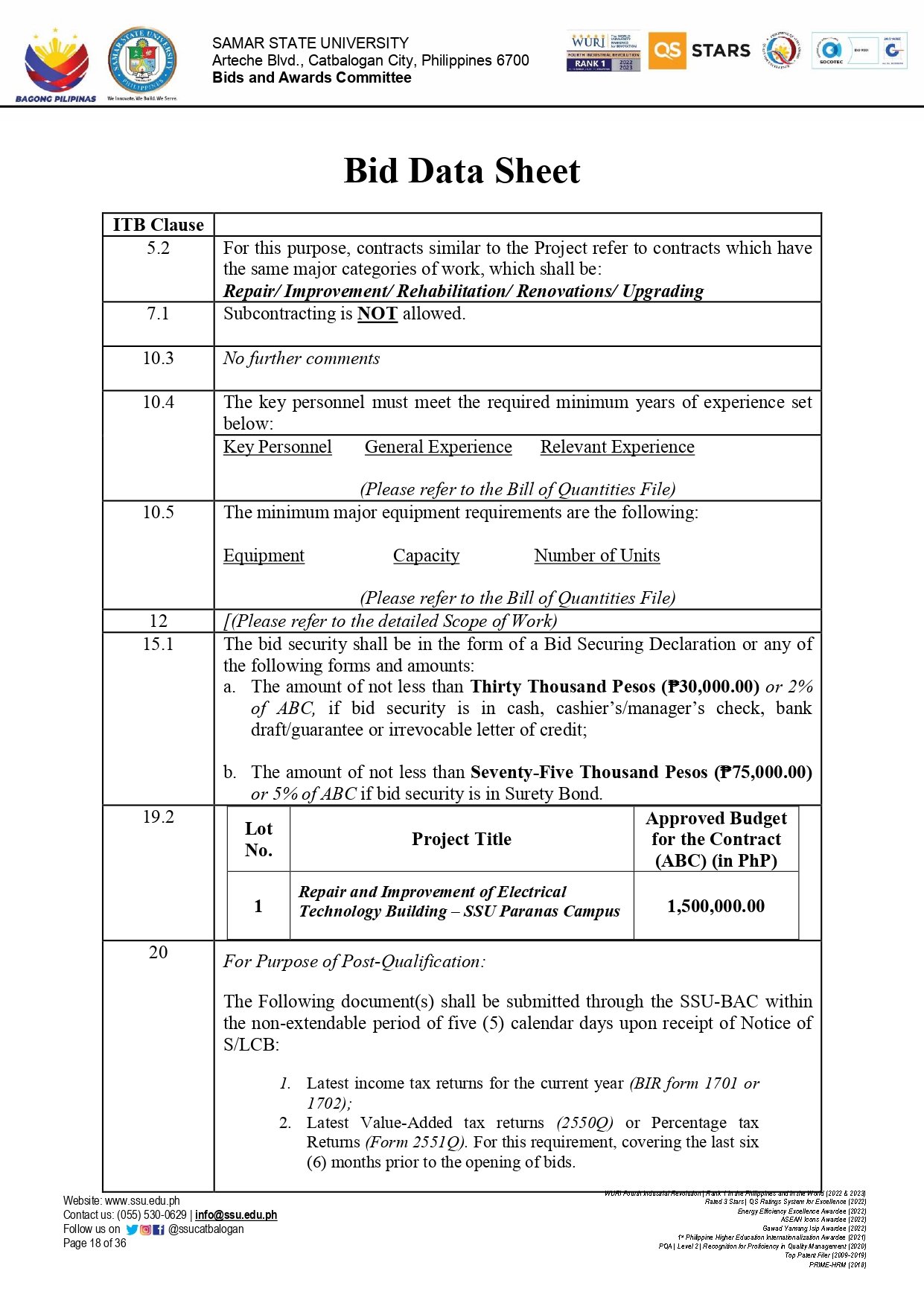 REPAIR AND IMPROVEMENT OF ELECTRICAL TECHNOLOGY BUILDING – SSU PARANAS CAMPUS Ref No.: SSU-2025-09-12By Admin / September 23, 2025