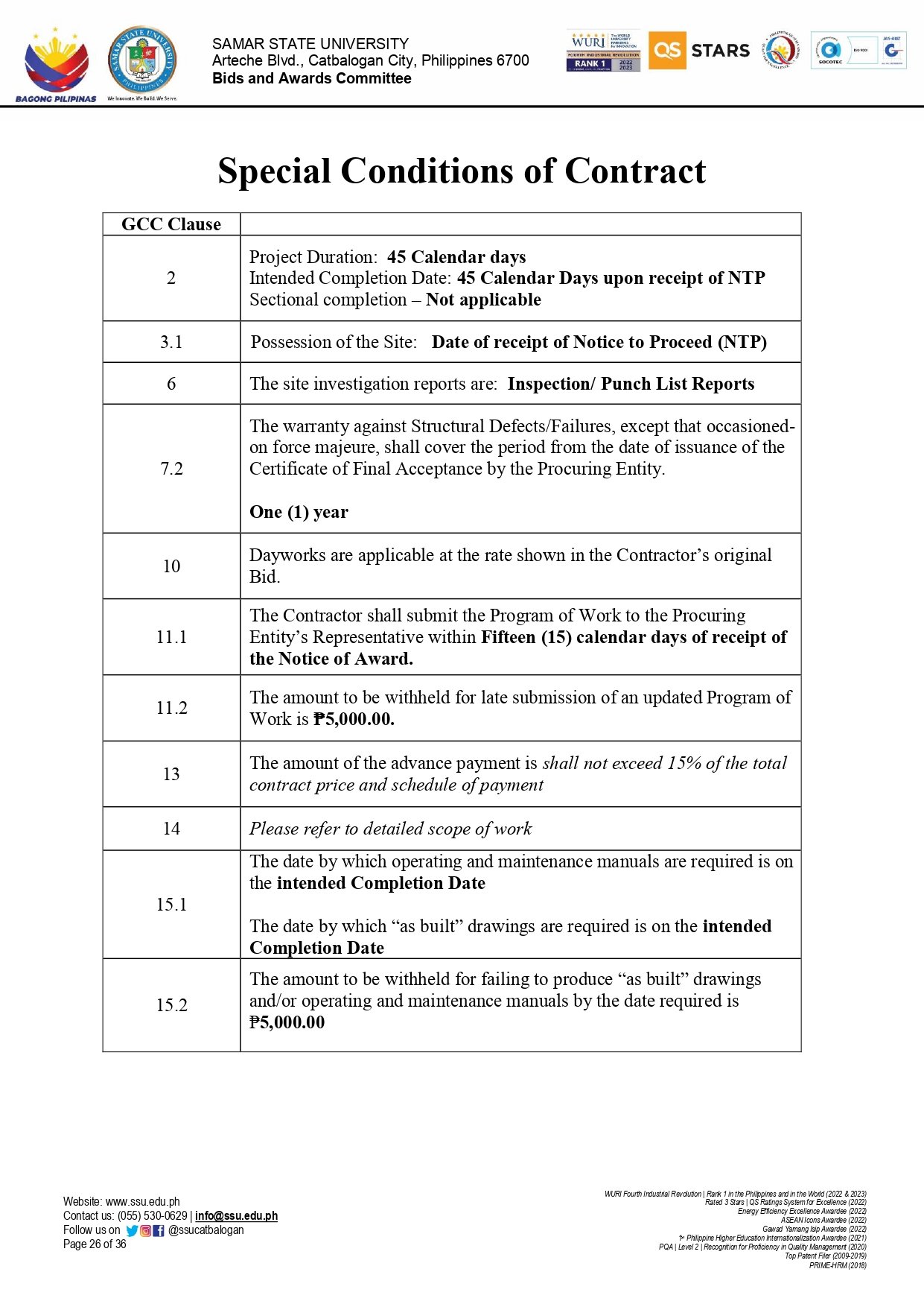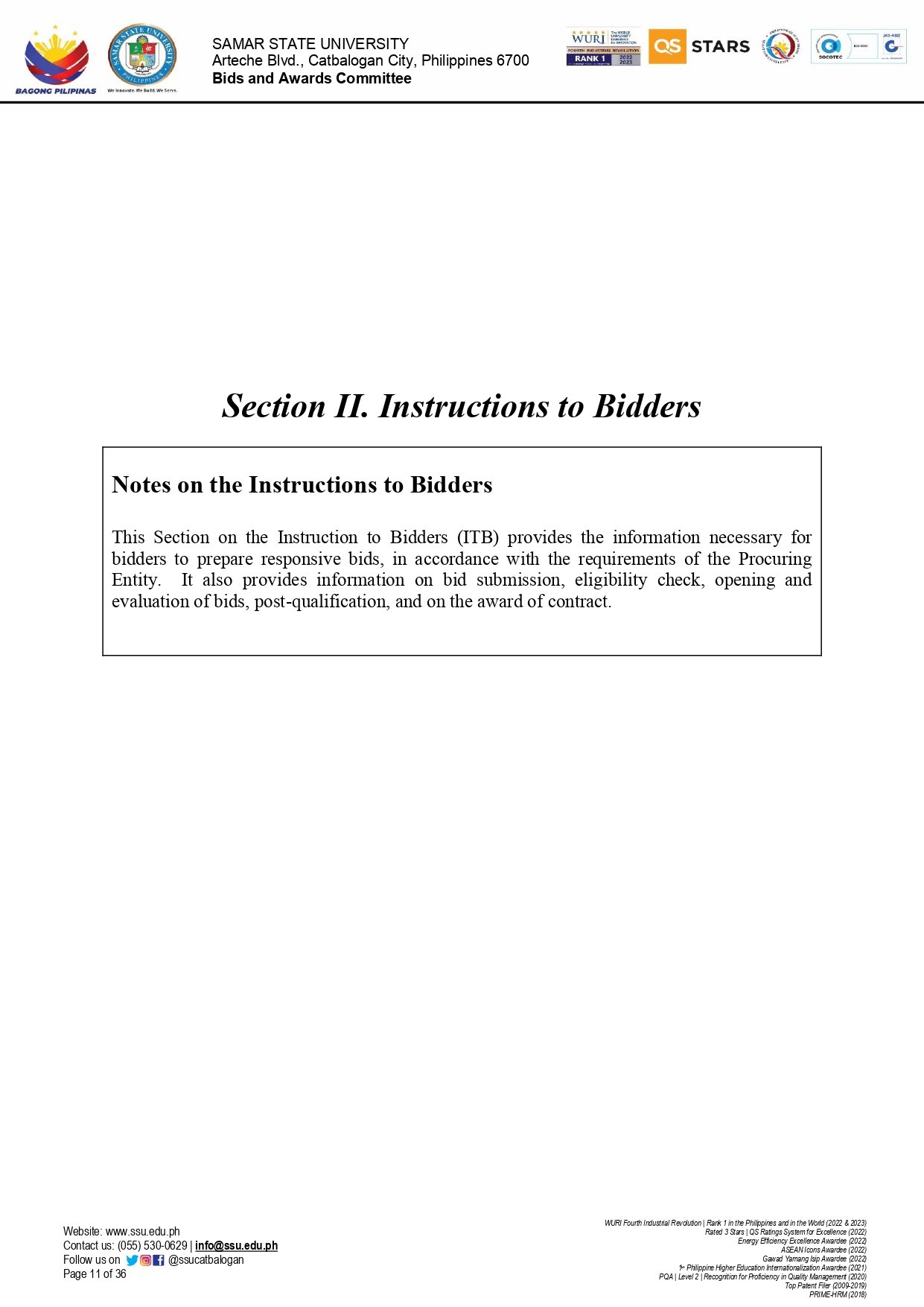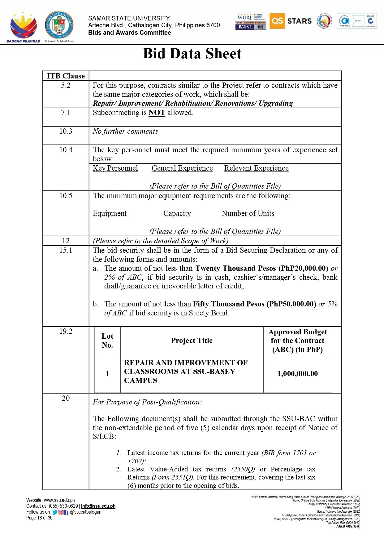 INVITATION TO BID FOR THE REPAIR AND IMPROVEMENT OF CLASSROOMS AT SSU-BASEY CAMPUS (Ref. No.: 2025-10-19)By Admin / October 9, 2025