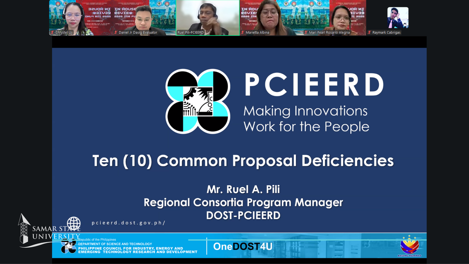 CATBALOGAN CITY, Philippines—Samar State University’s Center for Engineering, Science and Technology Innovation (CESTI) conducted its In-House Review for 2026 IOB (Internal Operating Budget) Funding virtually on November 13, 2025, gathering project proponents, academic leaders, and external evaluators for the presentation and assessment of research and extension proposals.