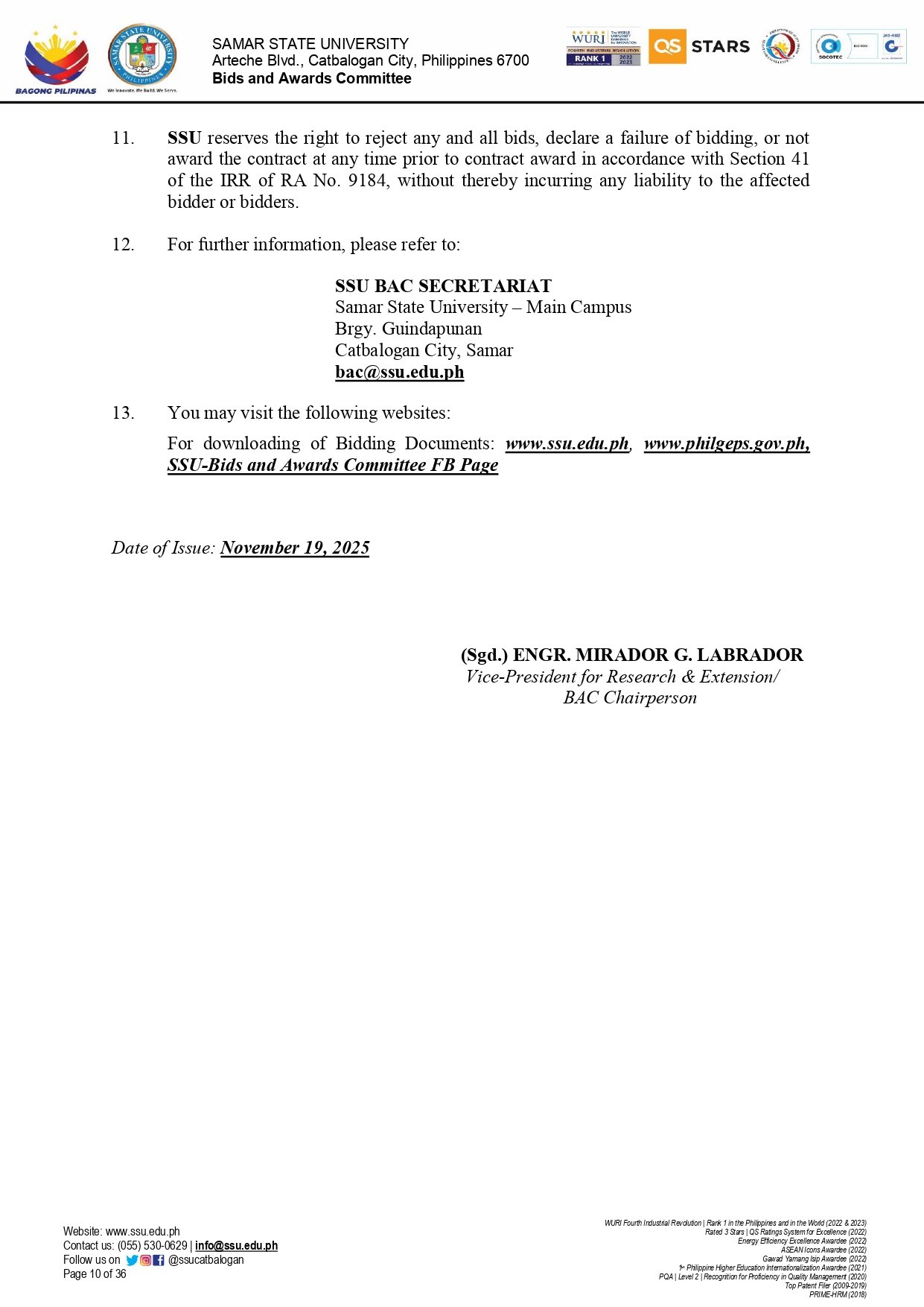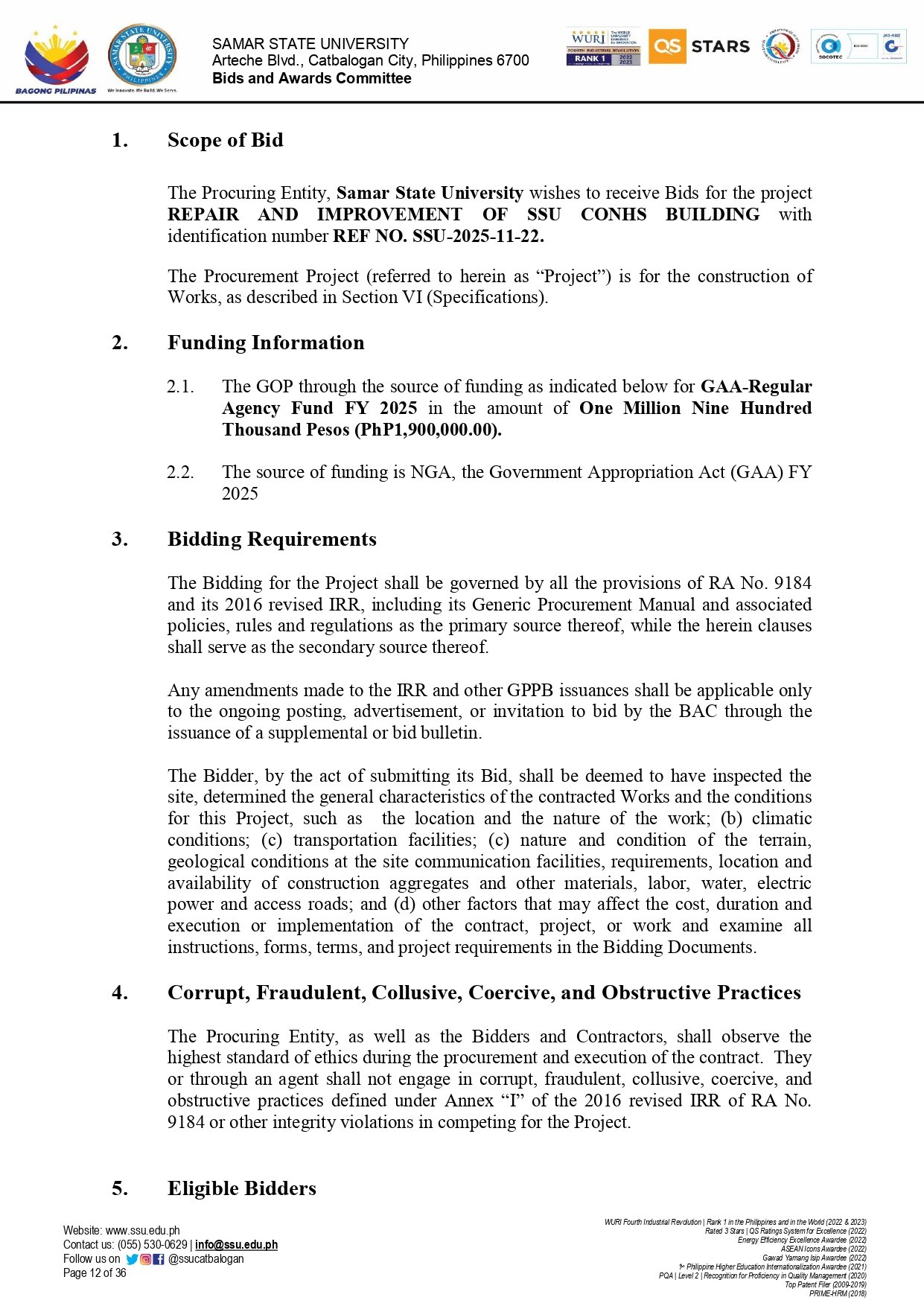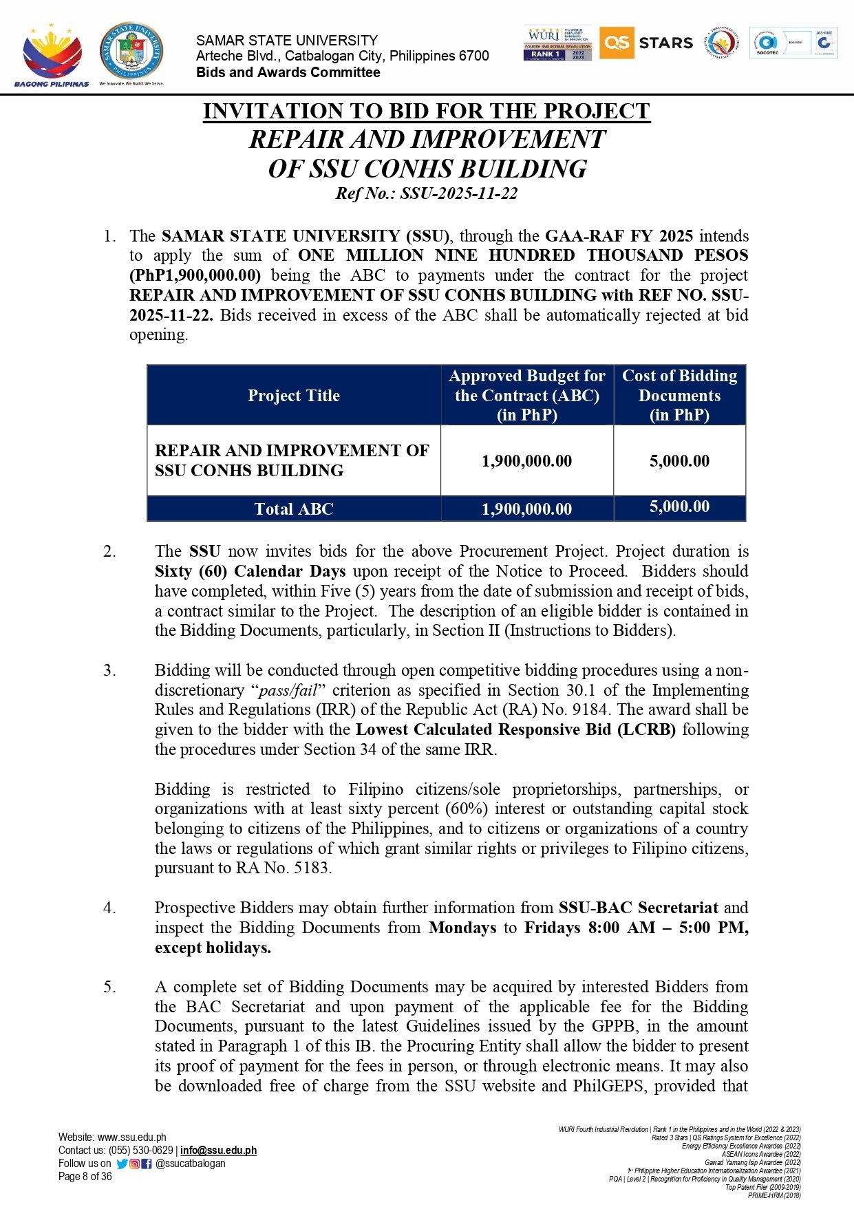 Invitation to Bid for the Repair and Improvement of SSU CONHS Building (Ref No: SSU-2025-11-22)By Admin / November 19, 2025