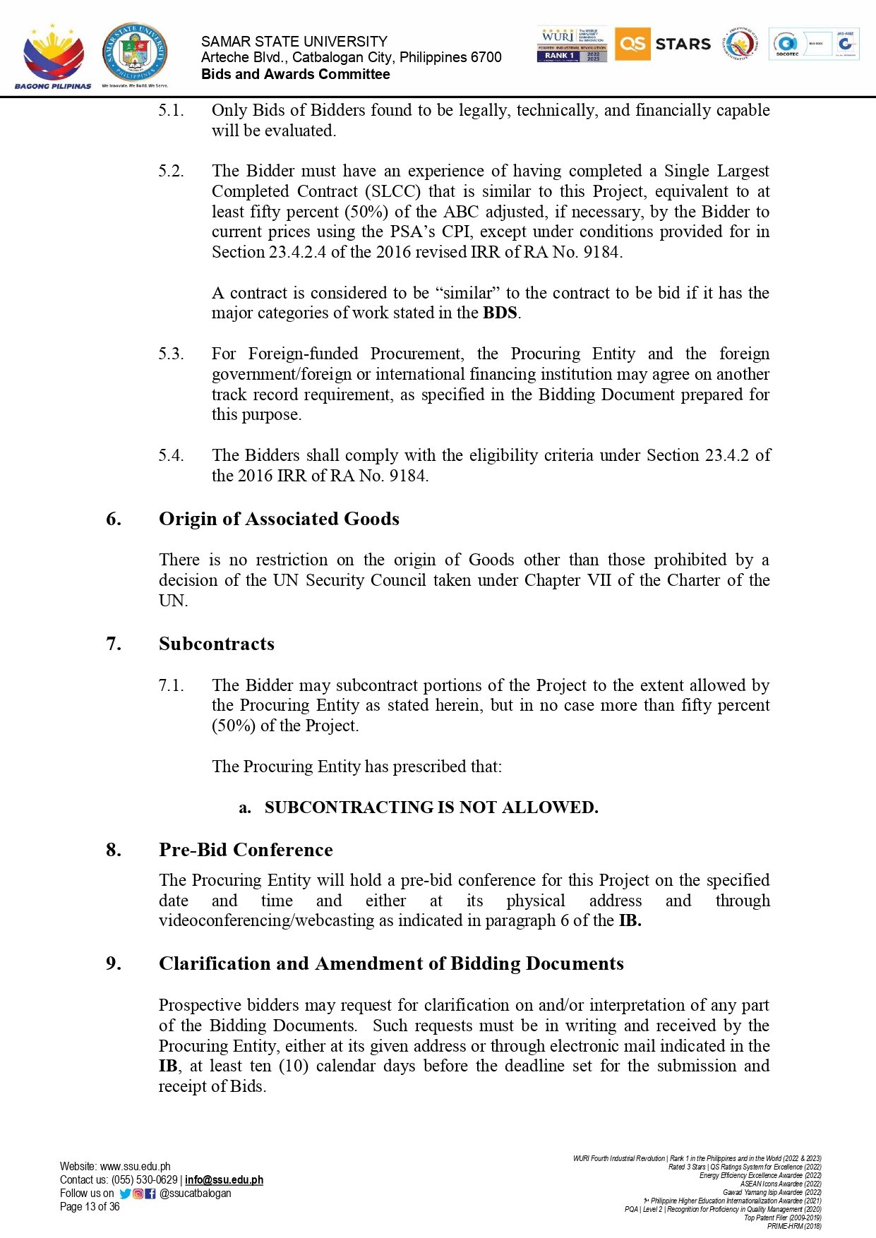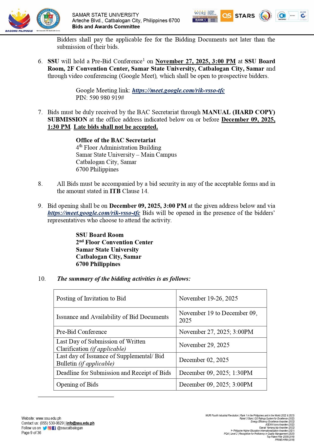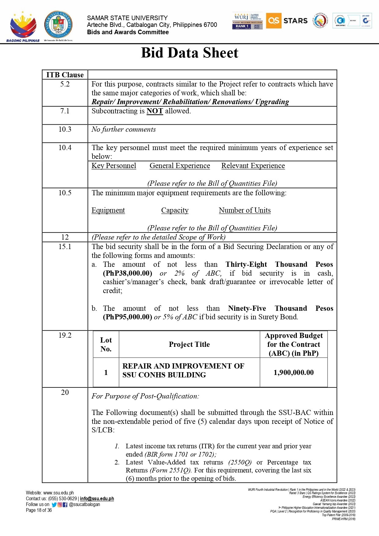 Invitation to Bid for the Repair and Improvement of SSU CONHS Building (Ref No: SSU-2025-11-22)By Admin / November 19, 2025