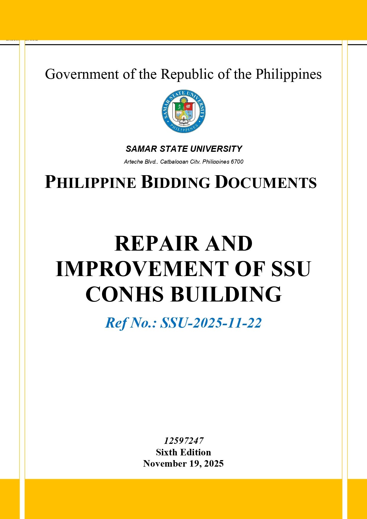 Invitation to Bid for the Repair and Improvement of SSU RIC Building (Ref No: SSU-2025-11-23) Leave a Comment / Bids Notices / Admin Invitation to Bid for the Repair and Improvement of SSU RIC Building (Ref No: SSU-2025-11-23) Read More »